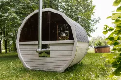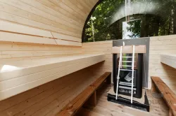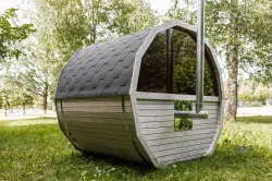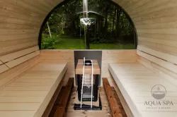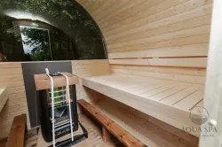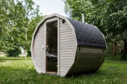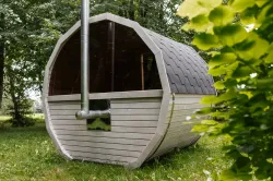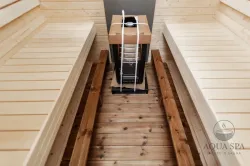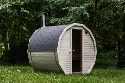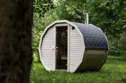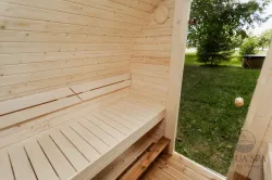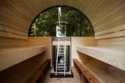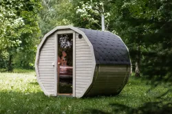 Ta sauna, przeznaczona dla 2–4 ​​osób, jest idealna dla rodzin lub małych grup przyjaciół. W zależności od preferencji, może być wyposażona w piec opalany drewnem lub piec elektryczny.